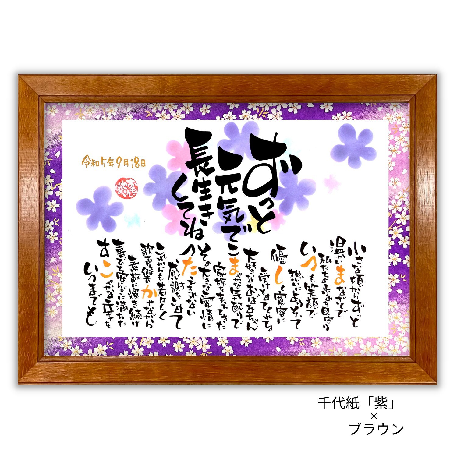 オーダーメイド 「ずっと元気で長生きしてね」 還暦 古希 喜寿 米寿 百寿 お祝い 父 母 両親 祖父 祖母 敬老の日 感謝状 プレゼント おもいやりポエム 友禅千代紙タイプ 30×41cm 喜ばれる 贈り物 | おもいやり家