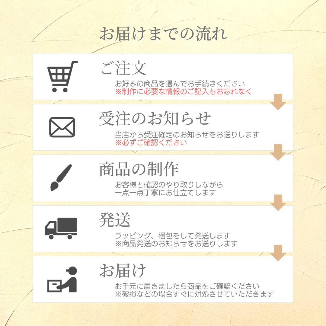 オーダーメイドでお相手方のお名前入れて1点1点丁寧にお作りしています!